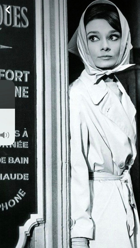 #TIP 2 Go old school Hollywood ala Sophia Loren and Audrey Hepburn , and team a trench with a babushka style scarf and a pensive look. (if under chin is a step too far tie around your neck)