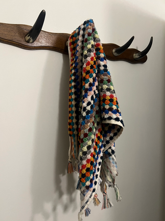 Finally the all important finishing touches that make an outfit ( sorry room) feel personal. I have candle pots as plant holders, a fish soap dish from comporta and hand towels from Laura Thomas via a local independent Hutch Home (that is sadly no longer) . I bought the vintage horn coat hooks for my husband at a carboot sale on his birthday, to humour him (as i had no intention of putting them up anywhere,) however in the context of the new 'cloakroom' they suddenly fit. Which often happens with clothing items too: they might not feel like they will work but then surprise you . Final thoughts: Always give things a try.